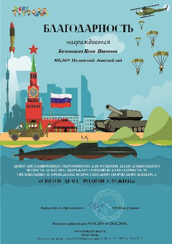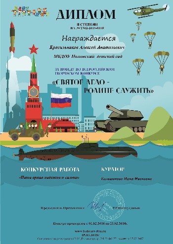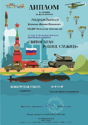 Дипломы за II место во Всероссийском творческом конкурсе "Святое дело-Родине служить"
