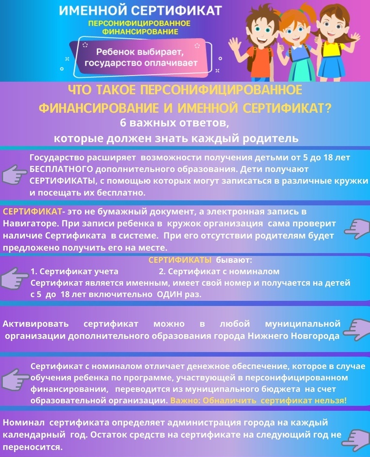 В рамках реализации в Нижегородской области федерального проекта «Успех каждого ребенка» национального проекта «Образование», с 1 сентября 2020 года на территории городского округа Семеновский внедряется система персонифицированного финансирования дополнительного образования детей.