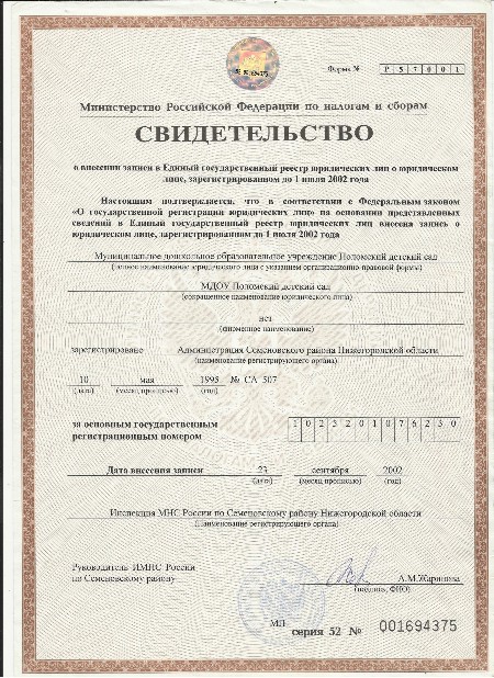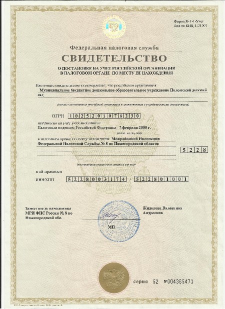 Свидетельство о постановке на учет в налоговом органе