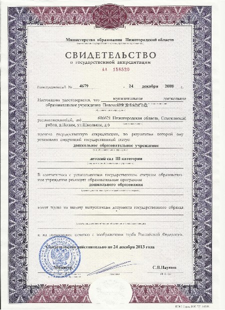 Свидетельство об аккредитации